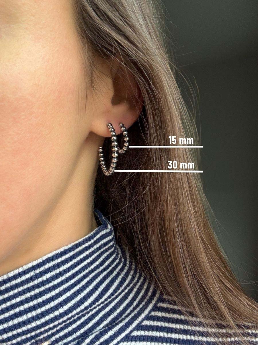 Minimal Western Navajo Pearl Style Hoop Earrings, 30 mm